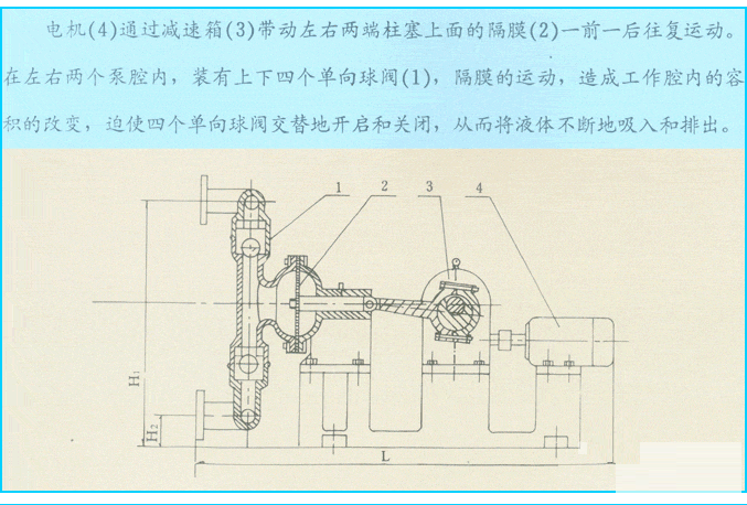 電動(dòng)隔膜泵是一種新型的泵類,近年來(lái)、由于在隔膜材質(zhì)上取得了突破性的進(jìn)展,國(guó)際上越來(lái)越多的工業(yè)化國(guó)家采用此種型式的泵,取代部份離心泵、螺桿泵來(lái)應(yīng)用于石化、陶瓷、冶金等行業(yè),我廠目前生產(chǎn)的隔膜泵分為YGB液動(dòng)式和DBY電動(dòng)式,產(chǎn)品設(shè)計(jì)均參考美國(guó)ABEL公司樣機(jī),并通過(guò)煤炭部鑒定。DBY型隔膜泵適用于低壓,即出口壓力≤3Kgf/cm2的場(chǎng)合,YGB型適用于出口壓力≥4Kgf/cm2的場(chǎng)合。本說(shuō)明書為DBY型隔膜泵。